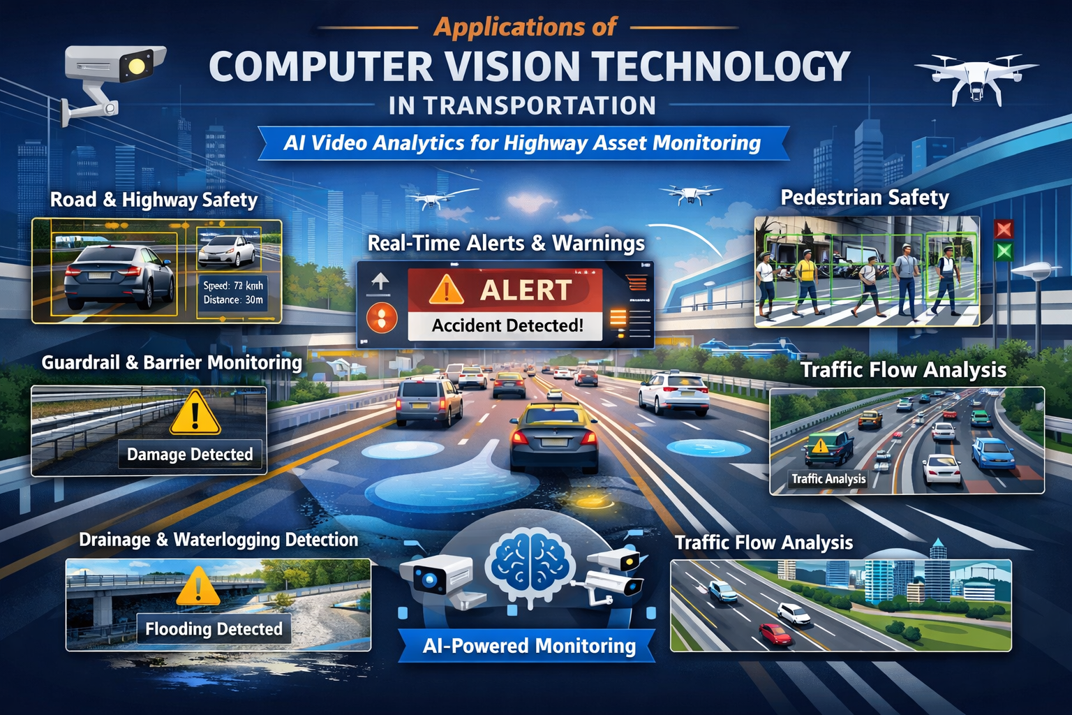 Computer vision is emerging as one of the most impactful technologies for improving road safety and reducing congestion. By analyzing video feeds from cameras using AI and machine learning, it delivers actionable insights that enhance traffic management, asset monitoring, and incident response—without heavy infrastructure costs.